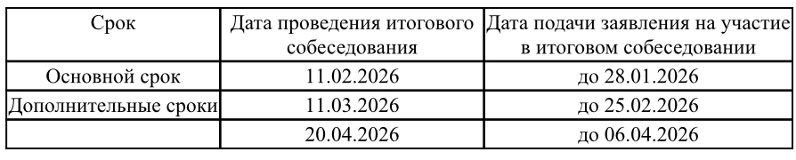 Даты проведения и сроки подачи заявлений для участия в итоговом собеседовании по русскому языку